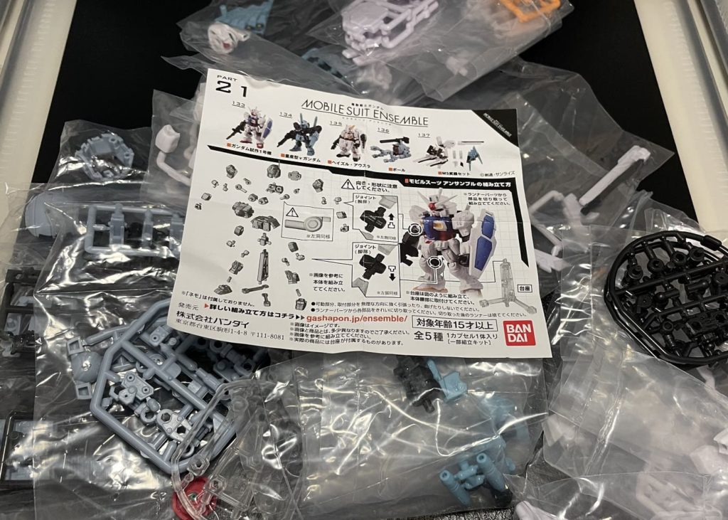 見つけたモビルスーツアンサンブルのシリーズの21弾、22弾と復刻された3弾はフルコンプしてしまいました(笑)