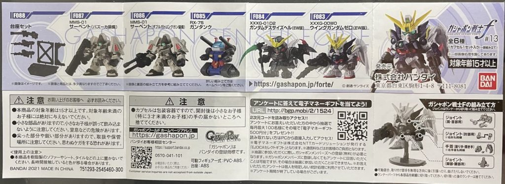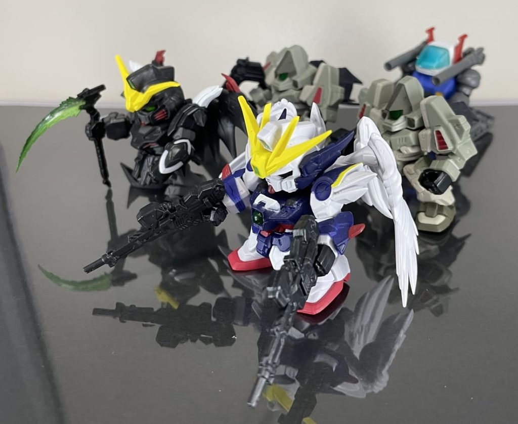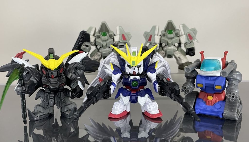 内容はウイングガンダムゼロ(EW版)、ガンダムデスサイズヘル(EW版)、ガンタンク、サーペント(ダブルガトリングガン装備)、台座セットの全6種。