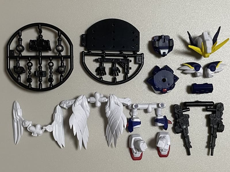 ウイングガンダムに比べるとだいぶパーツが少な目。