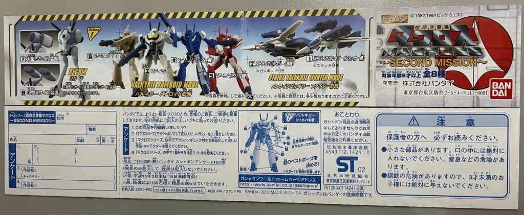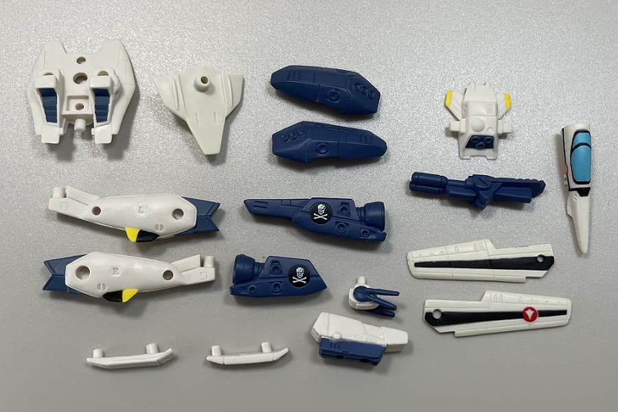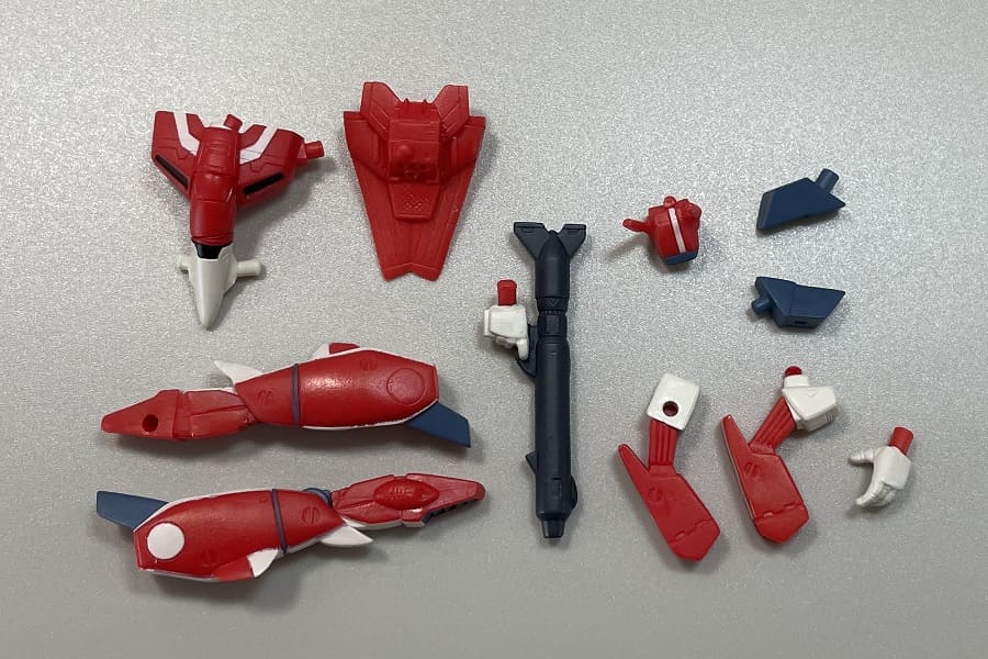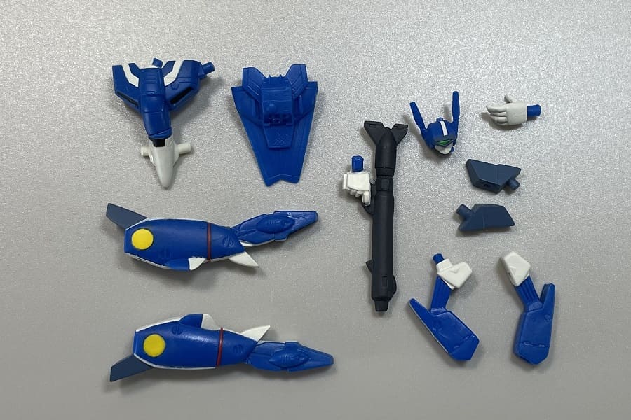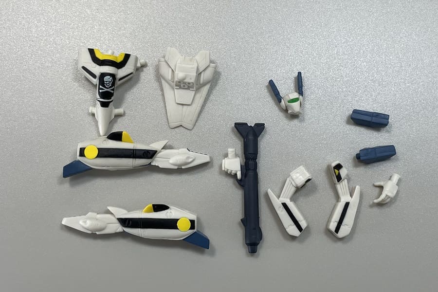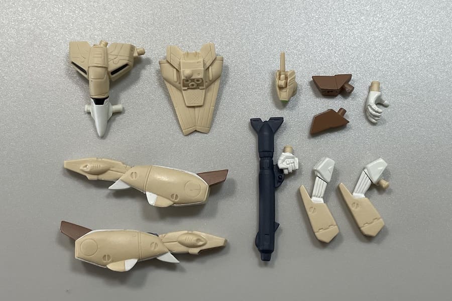 内容としては、ファイター形態のバルキリーが2機(フォッカー機、輝機)とバトロイド形態のバルキリーが4機(フォッカー機、マックス機、ミリア機、量産機)とリガード(大型ミサイル装備、小型ミサイル装備)の全8種。