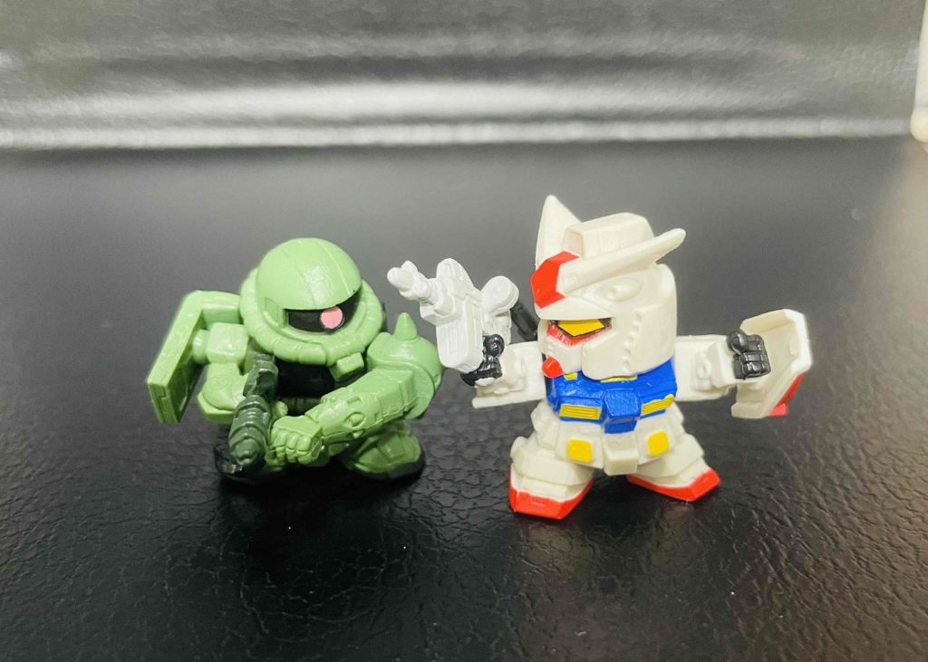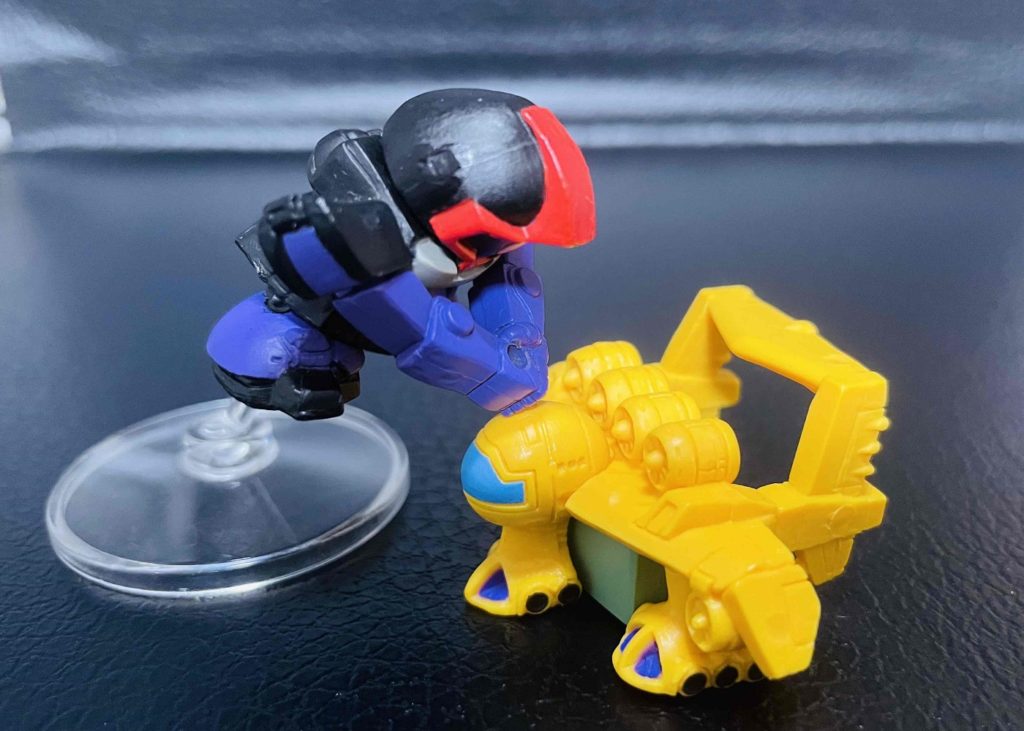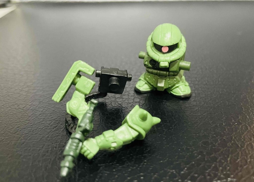 ただ、ザクは後ろのバックパックとマシンガンが両手に固定される形なので、動きはつけ辛い。
