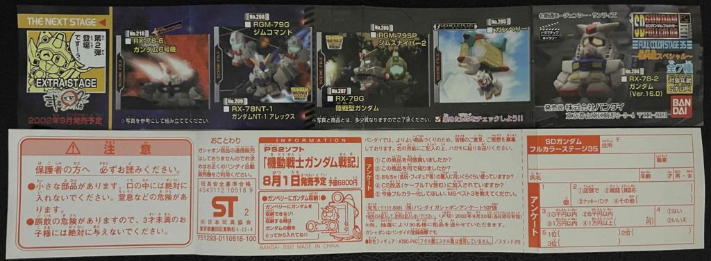 STAGE35の内容はガンダム(Ver16.0)とガンペリー、ジムスナイパー2、陸戦型ガンダム、ジムコマンド、ガンダムNT-1アレックス、ガンダム6号機の全7種。