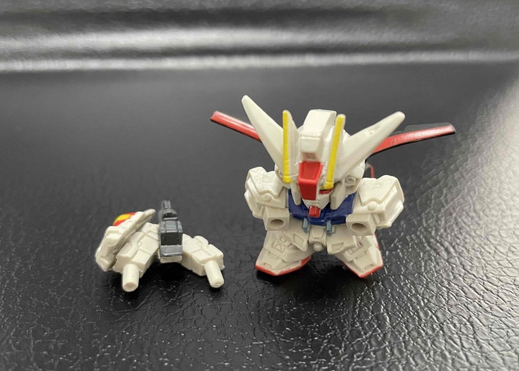 エールストライクガンダムは両腕がくっついているので、表情はまったくつけられません。