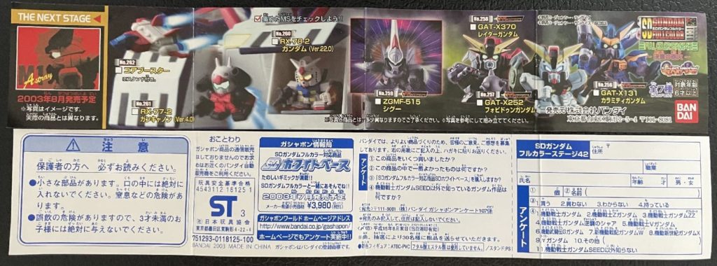 STAGE42の内容は、カラミティガンダム、フォビドゥンガンダム、レイダーガンダム、ジグーー、ガンダム(Ver.22.0)、ガンキャノン(Ver.4.0)、コアブースターの7種類。